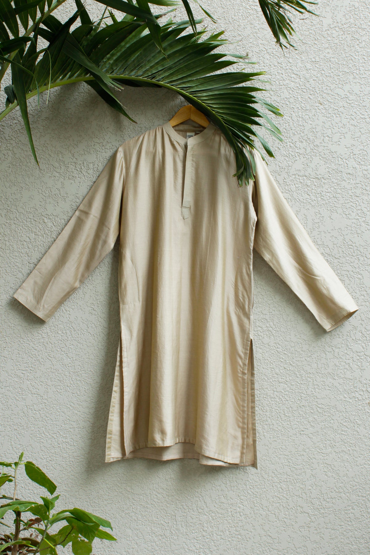 Chanderi Silk Plain Dye Men Kurta in Beige