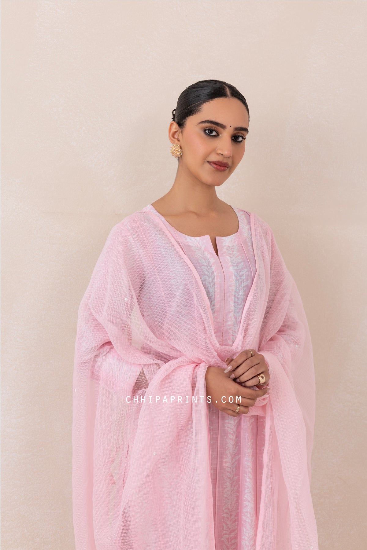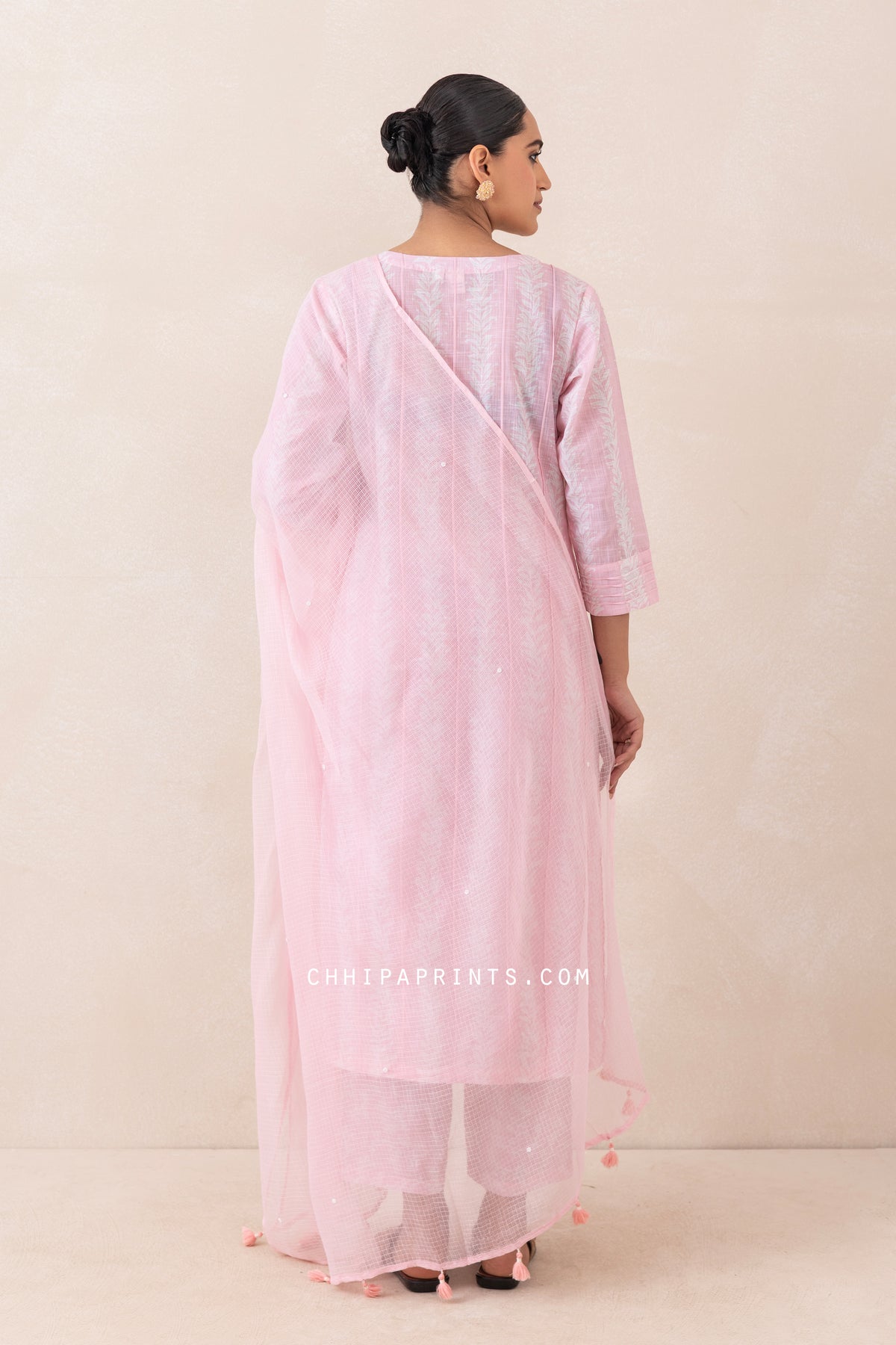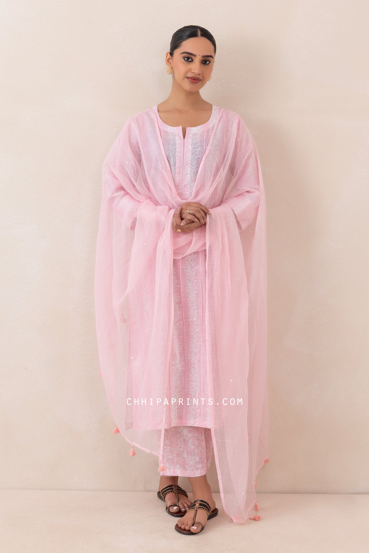 - Kota Doria Dupatta with Pearl Work