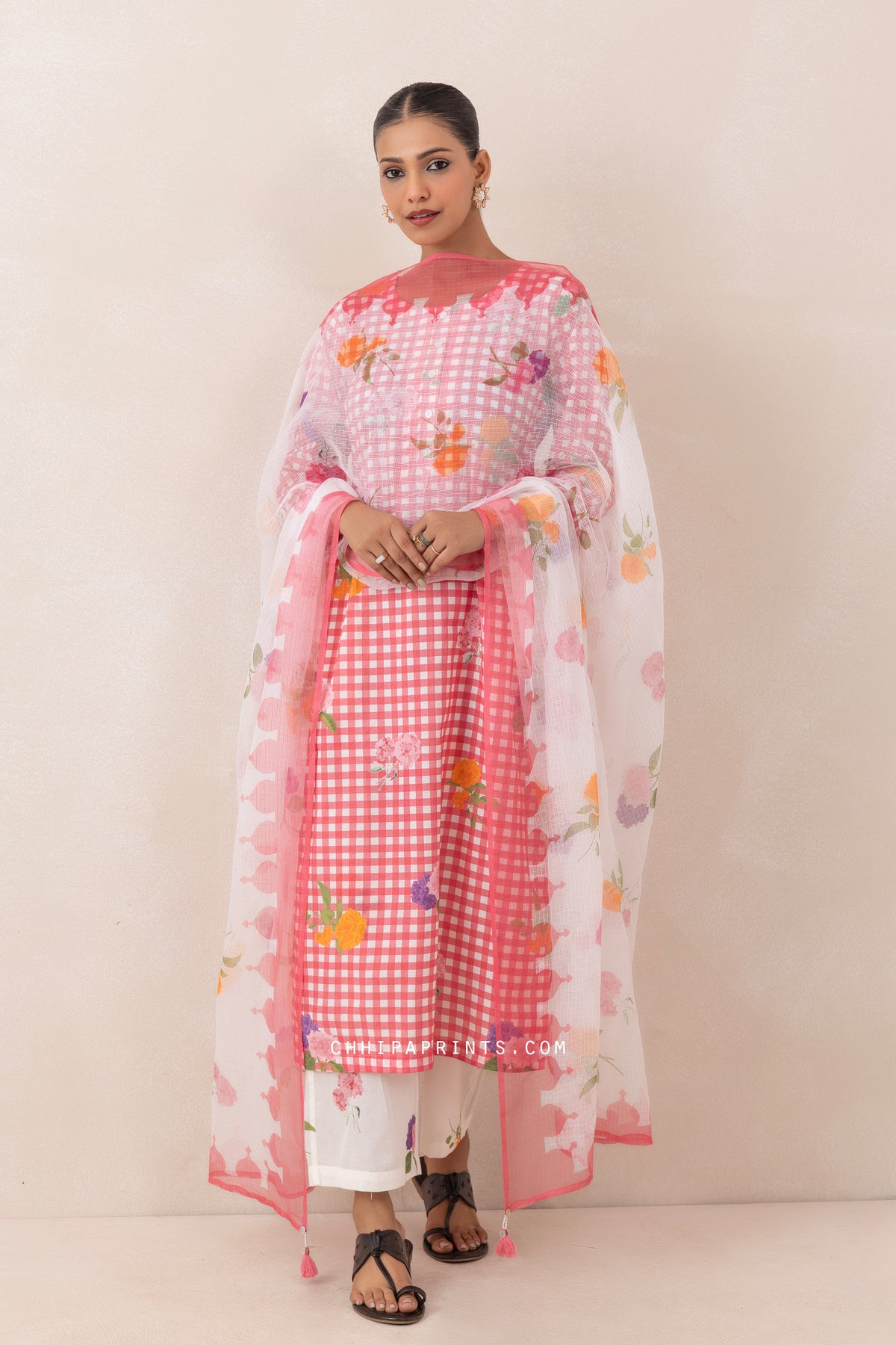 - Printed Kota Doria Dupatta
