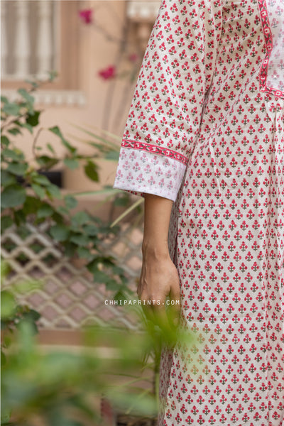 Cotton Block Print Mahin Buti Kurta Set in Shades of Pink