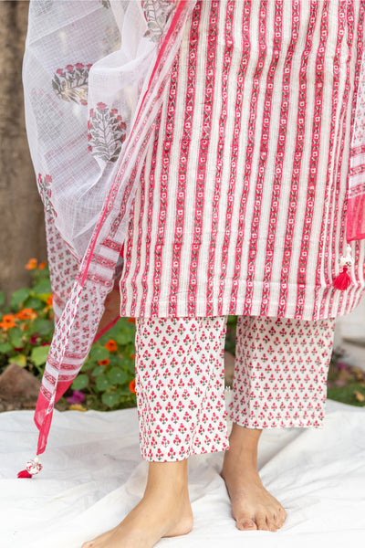 Cotton Block Print Parcha Border Kurta Set in Shades of Pink