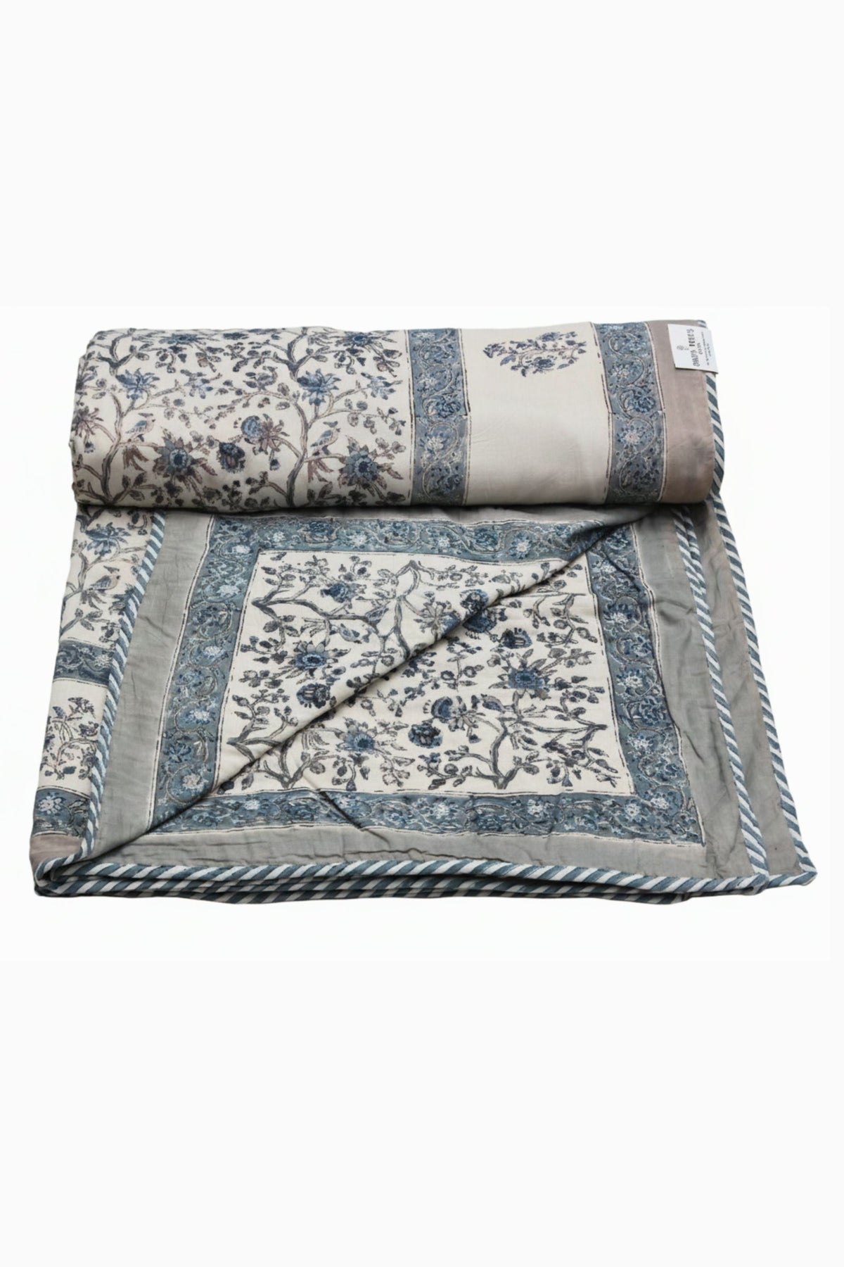 Cotton Flower Jaal Hand Block Print Dohar in Gray